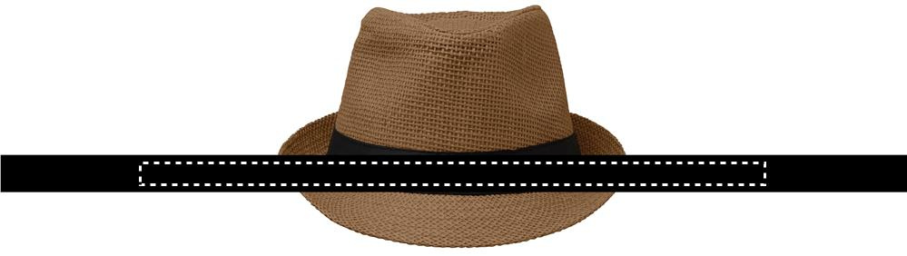 Papīra salmu cepure ar melnu poliestera lentīti. Pasūtījumiem bez apdrukas lentīte tiks piegādāta atsevišķi no precēm.