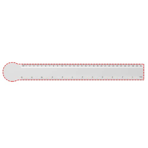 Apļa formas ciets, pārstrādātas plastmasas lineāls ar marķējumu collās vai centimetros.