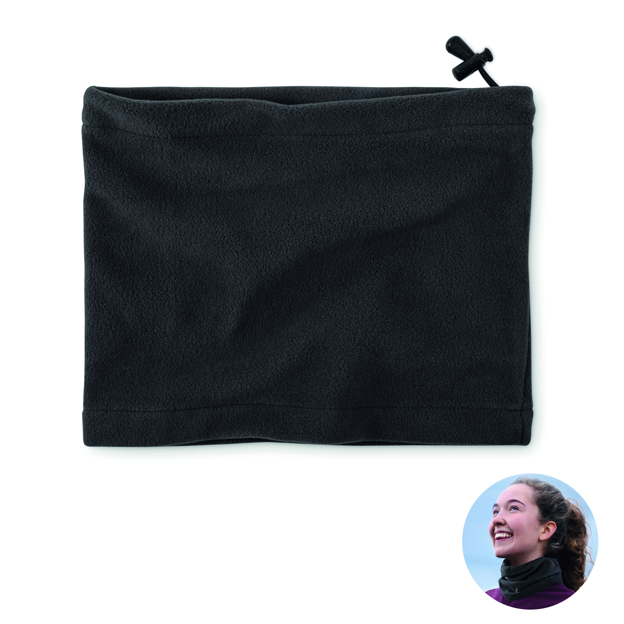 "Fleece multiuse beanie, neckwarmer, polar fleece 200 gsm (100% RPET polyester). One-size-fits-all design."