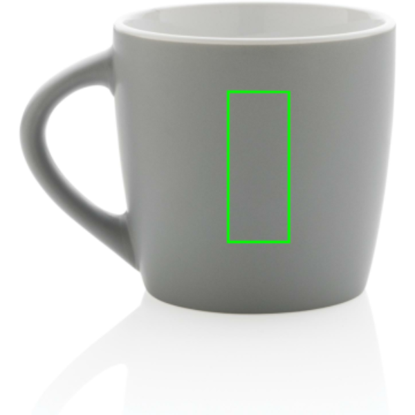 Эта керамическая кружка отличается свежим дизайном с матовой внешней отделкой и внутренним цветовым акцентом. Кружка пригодна для мытья в посудомоечной машине и протестирована в соответствии с EN12875-1 (не менее 125 циклов мытья для всех методов декорирования). Упакована в подарочную крафт-коробку. Емкость 300 мл.