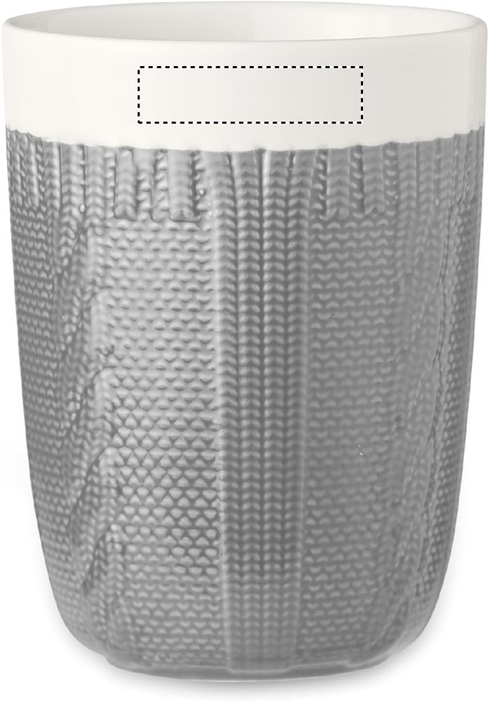 Керамическая кружка стилизованная под вязаное покрытие. Емкость: 310 мл. Поставляется в индивидуальной коробке.