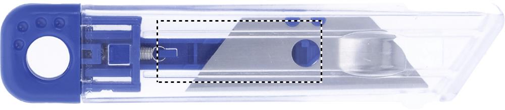 Канцелярский нож. Прозрачный корпус с цветными вставками.