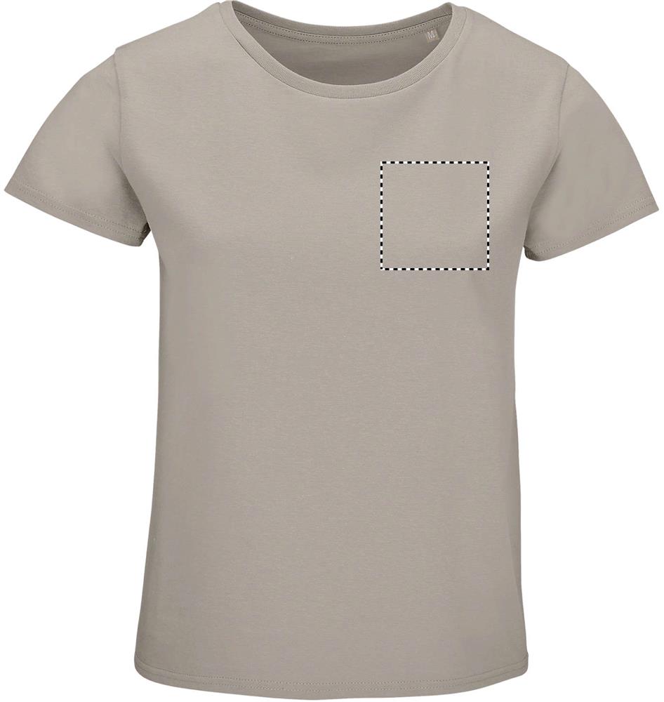 SOL'S PIONEER WOMEN, Женская облегающая футболка из джерси с круглым вырезом, 100% органически выращенный хлопок, Натуральная отделка для более мягкого и гладкого ощущения Джерси 175, Ребристый воротник из 100% хлопка, Круглый вырез, Лента на шее, Приталенный крой, Трубчатый, (1) пепельный : 98% органический хлопок / 2% вискоза, (2) серый меланж : 85% органический хлопок / 15% вискоза. Соответствие размеров см. в таблице размеров в разделе документации к изделию.