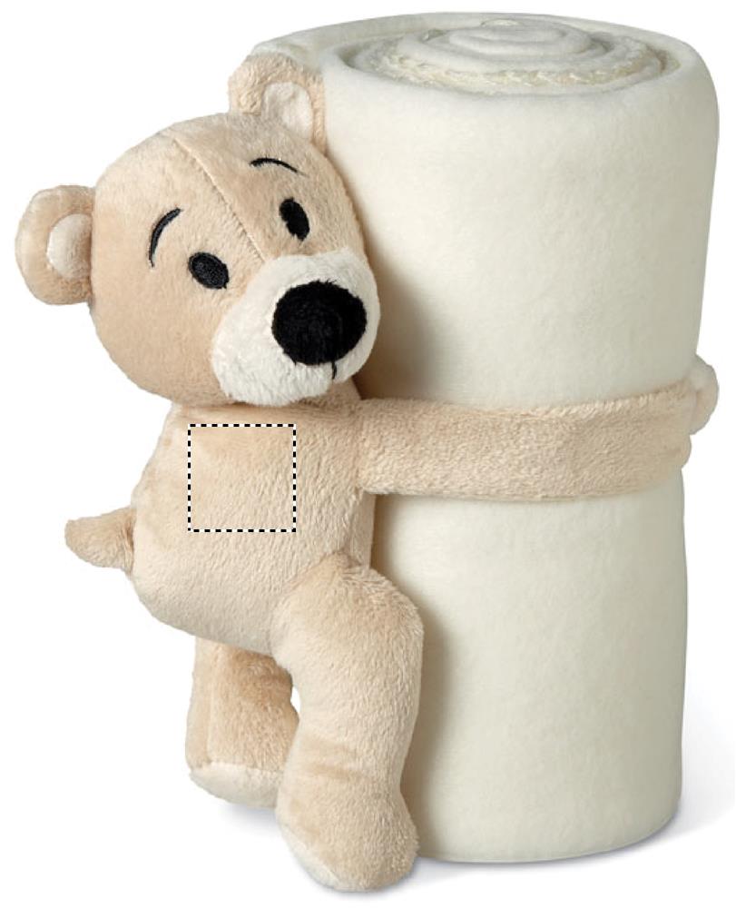 Флисовый детский плед с плюшевым мишкой, удерживающим одеяло.
