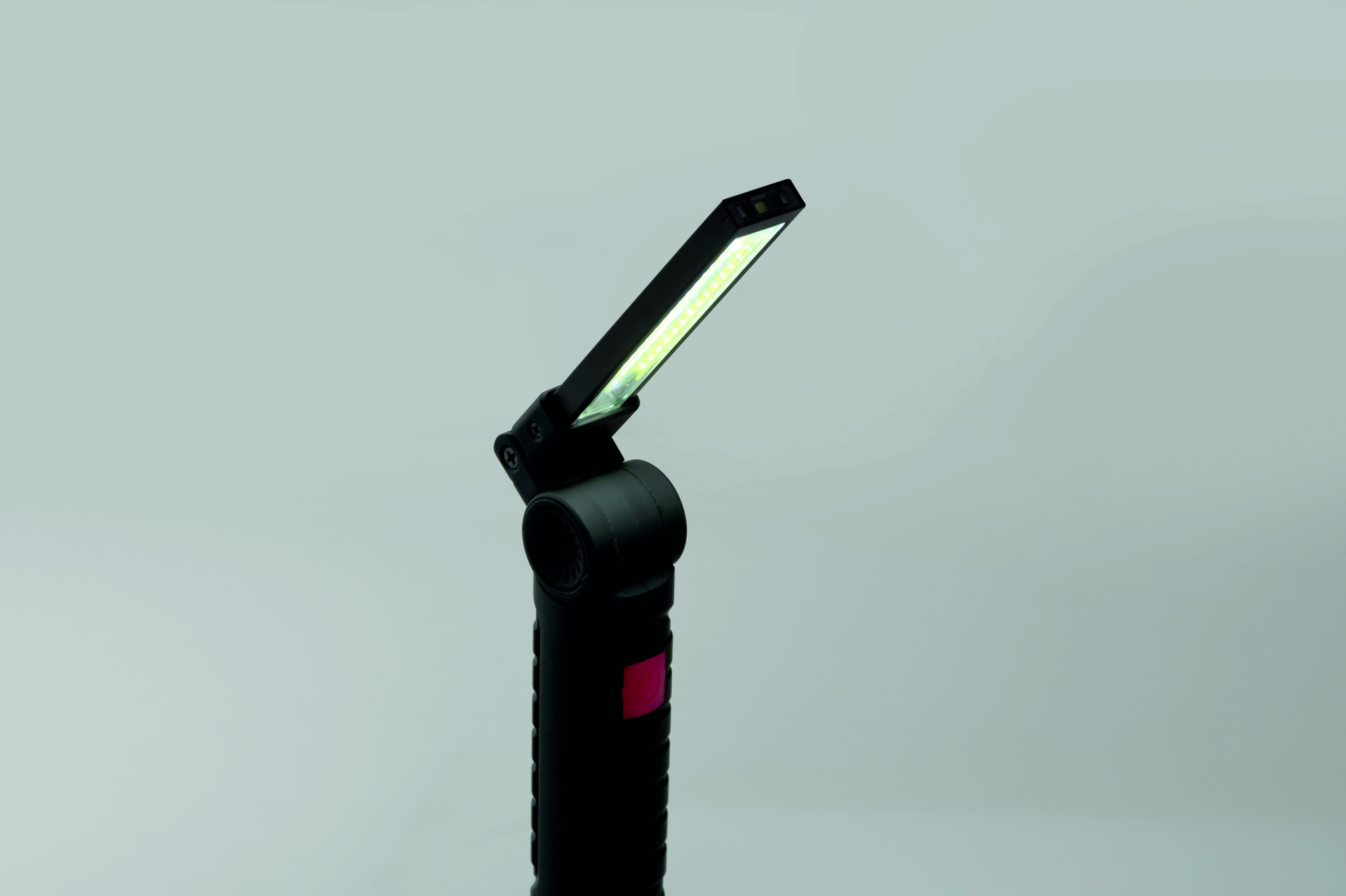 Aluminium rechargeable 1200mAh work light with 270° rotatable body. Features bright inspection light, side COB light with 2 settings, hanging hook and magnetic base. Charging cable included.