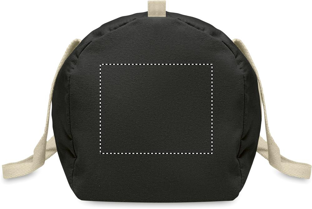 Duffle, sports or travel bag with zippered side compartment and zippered inner pocket in 320 gr/m² recycled cotton (80%) and recycled polyester (20%) with long handles.