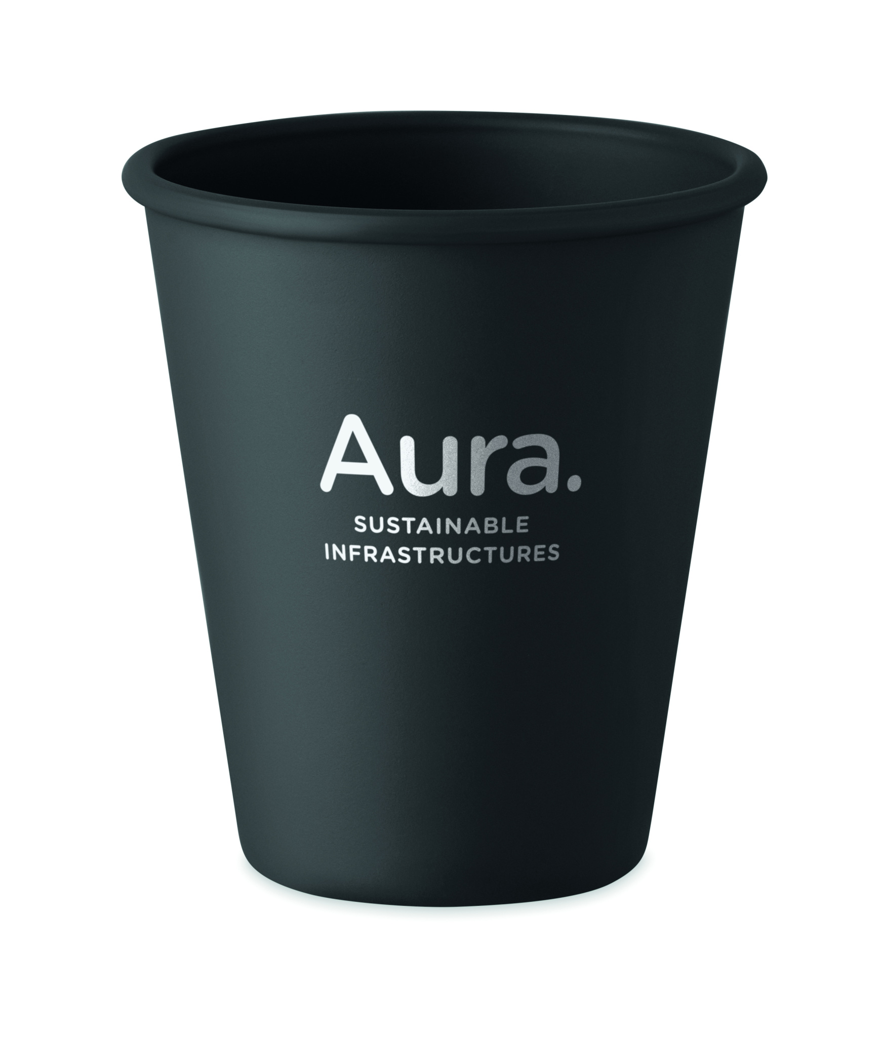 Reusable single wall cup in PLA corn. Capacity: 200ml. As this is a single walled mug, heat transfer can still occur.
