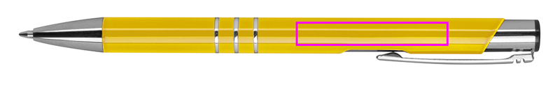 Полностью лакированная металлическая шариковая ручка с 3 декоративными кольцами и синим стержнем большой емкости. Ваш логотип будет выгравирован справа от зажима.