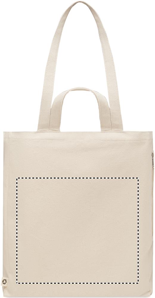 Сумка для покупок или пляжа из переработанного поликоттона (70% переработанного хлопка, 30% переработанного полиэстера) с короткими ручками. Имеет боковой карман на молнии гр/м² 380.