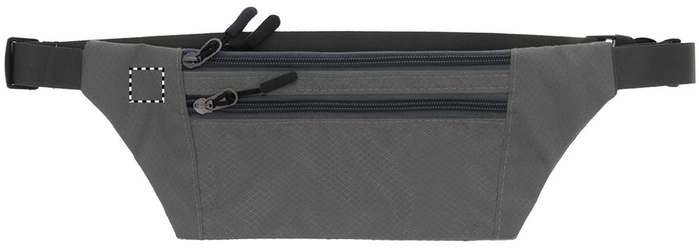Сумка поясная из жаккардового полиэстера с 2 передними карманами на молнии и 1 заднее отделение на молнии и регулируемый пояс.