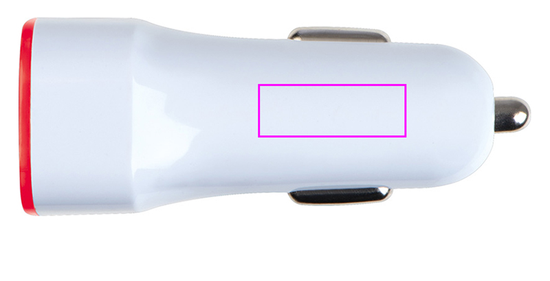 Стильный зарядный адаптер для автомобильной розетки 12 В с двумя слотами для быстрой или обычной зарядки, цветное кольцо светится во время зарядки. Мы печатаем ваш логотип над кольцом.