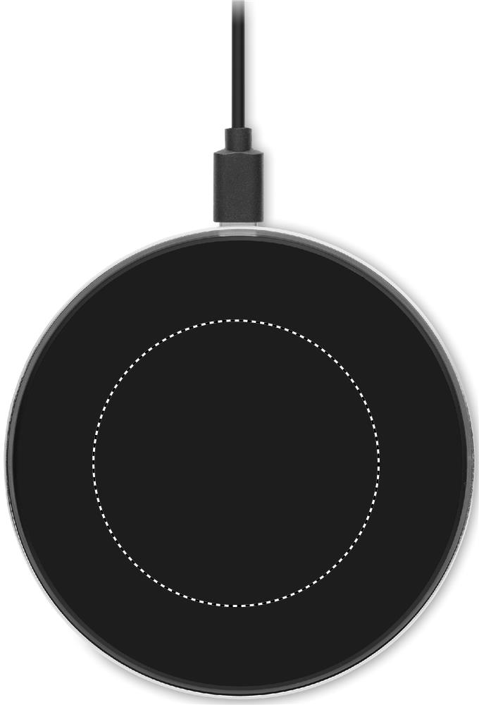 Металлическое беспроводное зарядное устройство 10 Вт со стеклянной поверхностью. Подключите устройство к компьютеру и положите на него смартфон. Синий индикатор зарядки. Выход: DC 9V/1.1A. Совместимость с последними моделями андроидов, iPhone® 8, X и более новыми.