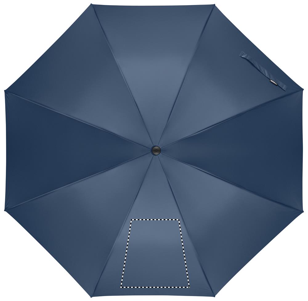 27-дюймовый зонт устойчивый к ветру с автоматическим раскрытием из переработанного эпонжа 190T. Стержень и спицы из стекловолокна. Ручка из переработанной пшеничной соломы и пластика. Пластиковые наконечники и верхняя часть.
