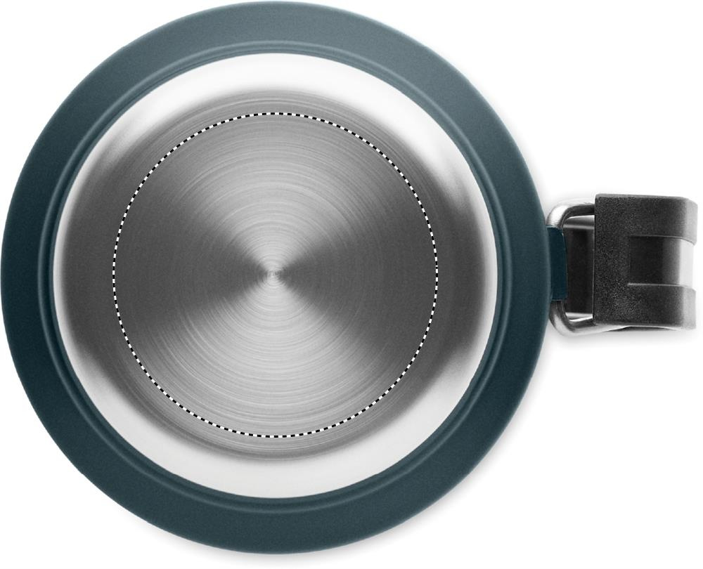 Dubbelväggig vakuumisolerande flaska i återvunnet rostfritt stål (90% återvunnet rostfritt stål och 10% rostfritt stål) med handtag på sidan. Lock i PP och mugg i återvunnet rostfritt stål. Läckagefri. Volym: 1L.