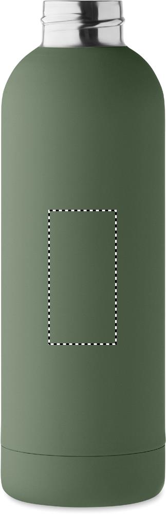 Dubbelväggig vakuumisolerande flaska i återvunnet rostfritt stål (90% återvunnet rostfritt stål och 10% rostfritt stål) med gummifinish och silikonhandtag. Volym: 500 ml.