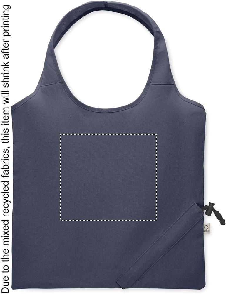 Hopvikbar kasse av återvunnen bomull, melerade färger (70% återvunnen bomull och 30% RPET). 140 gr/m². Produkten kan krympa något efter märkning.