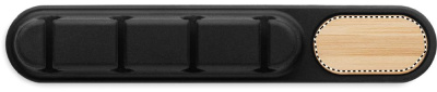 Kabelhållare i silikon med detaljer i naturlig bambu. Kompakt oval design håller kablarna ordnade och säkra.