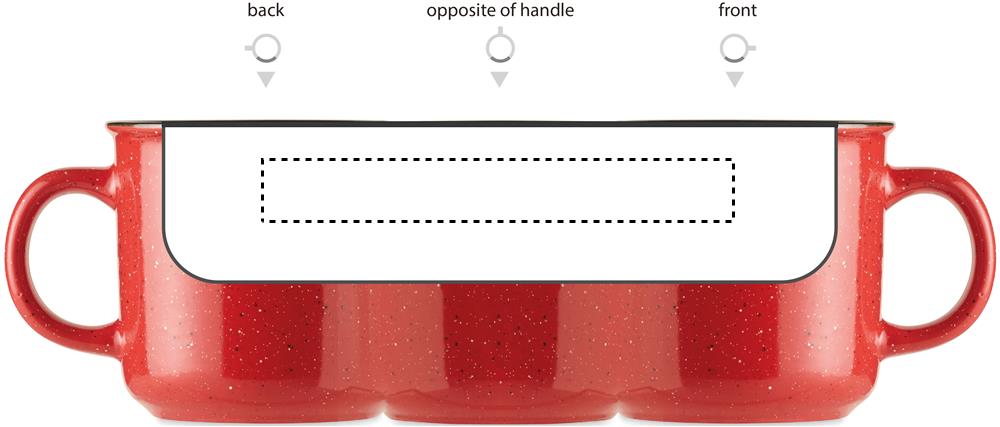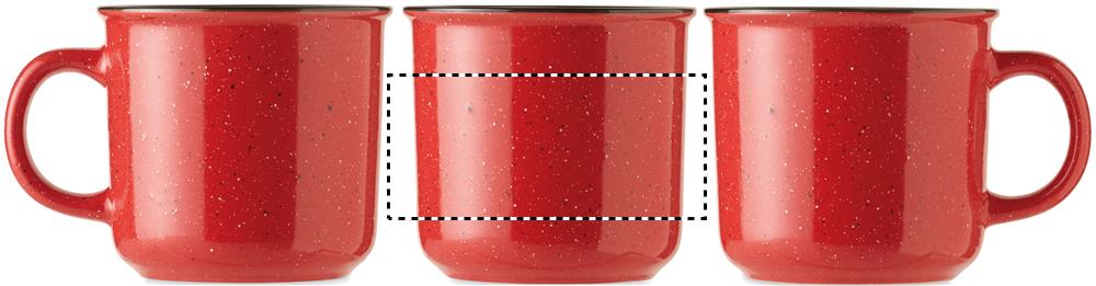 Stor mugg i keramik i vintagestil. På grund av det fläckiga mönstret kommer fläckar att vara synliga i den tryckta logotypen. Kapacitet: 400 ml.