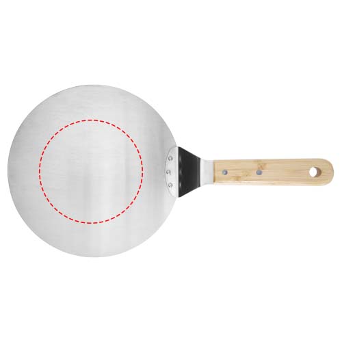 Med denna tunna pizzaspade i metall är det enkelt att få ut pizzan eller pajen ur ugnen upp på tallriken. Handtaget är tillverkat av bambu som kommer från och produceras enligt hållbara standarder.