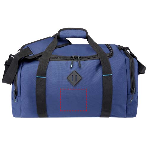 Rädda haven en väska i taget! REPREVE® Our Ocean™ duffelväska är tillverkad av återvunnen, havsbaserad plast. Har ett stort huvudfack med dragkedja, två sidofickor med dragkedjor för t.ex. skor eller accessoarer, bärhandtag och en avtagbar, vadderad och justerbar axelrem.