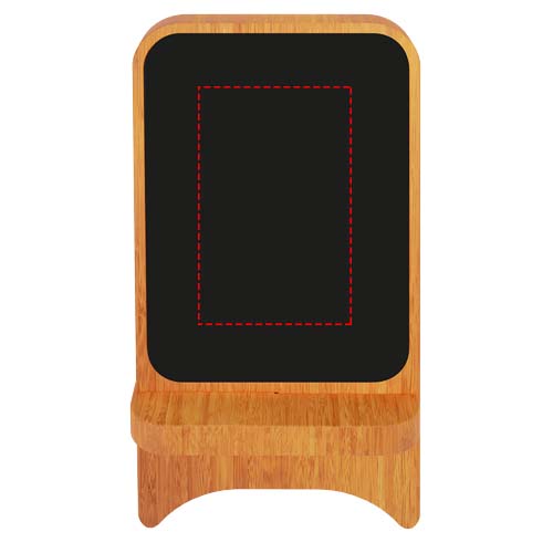 10 W trådlös laddare tillverkad av gummi och bambu med antibakteriell behandling och upplyst logotyp. Typ-C-ingång: Levereras i en svart presentförpackning gjord av återvunnet kraftpapper inklusive kabel i återvunnen PET plast. Patent EUROPE EUIPO.