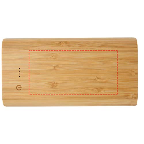 Powerbank på 20 000 mAh tillverkad av bambu, med en på/av-pekknapp och fyra LED-indikatorer för att visa återstående batterikapacitet. Mikro-USB-ingång 5 V/2 A, Type-C-ingång 5 V/3 A, Type-C-utgång 5 V/3,1 A max, dubbel USB-A-utgång 5 V/3,1 A max, total effekt 15,5 W. Levereras med en 30 cm TPE 3 A Type-C till Type-C-laddningssladd, en bruksanvisning och en presentförpackning i kraftpapper. Eftersom bambu är en naturprodukt kan det finnas små variationer i färg och storlek per objekt, vilket kan påverka det slutliga tryckresultatet.
