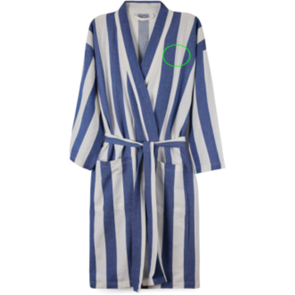 Denna mjuka och bekväma hamam-badrock är perfekt att bära både på stranden och i hemmet. Tillverkad i en lätt och luftig blandning på 200 gsm, kombinerar den bomullens mjukhet med polyesterens snabbtorkande egenskaper. Badrocken har en tidlös design med ett tvåfärgat randigt mönster, nätt krage, framfickor, 3/4-ärmar och ett midjebälte som ger en bekväm och anpassad passform. Certifierad enligt GRS (Global Recycled Standard), GRS- certifieringen garanterar att hela leveranskedjan av återvunna material är certifierad. Det totala återvunna innehållet baseras på produktens totala vikt. Denna produkt består av 69 % GRS-certifierad återvunnen bomull och 29 % GRS-certifierad återvunnen polyester.