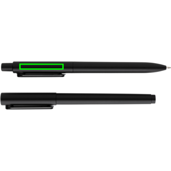 Pennorna i detta set har en metallfinish och metallclip. Setet innehåller en X6 penna och en X6 cap pen. X6 pennan har ca. 1200m skrift, blått tyskt Dokumental®-bläck och TC-kula för extra skön skrivkänsla. X6 cap pennan har blått bläck med låg viskositet som ger en ännu skönare skrivkänsla. Låg viskositet ger ett bättre flöde för bläcket vilket förbättrar smidigheten. Ca. 800m skrift. Båda pennorna har blått bläck. Levereras i en färgmatchande presentkartong.